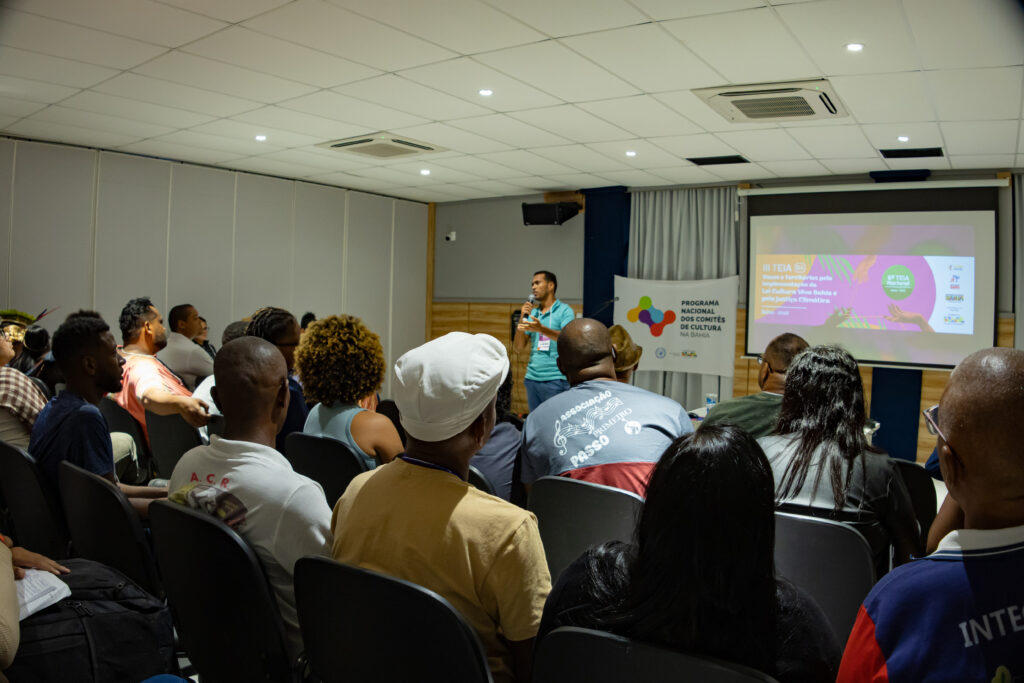 Na tarde do primeiro dia aconteceram o ciclo de oficinas e diálogos referentes ao programa Cultura Viva dentro da programação da 3ª Teia Bahia realizada no Centro de Convenções de Feira de Santana