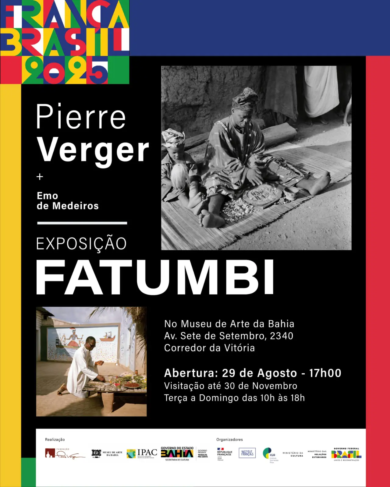 O outro curador da exposição, Emo de Medeiros, é artista visual franco-beninense, descendente de populações agudas — beninenses de origem afro-brasileira. Além do material documental e fotográfico consagrado a Verger, uma sala da mostra, intitulada FatumbIA, apresenta 16 obras de Emo realizadas com o uso de inteligência artificial, articuladas em torno dos saberes e símbolos do Fá.