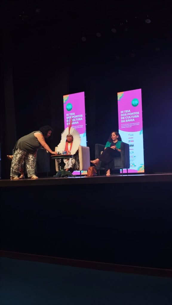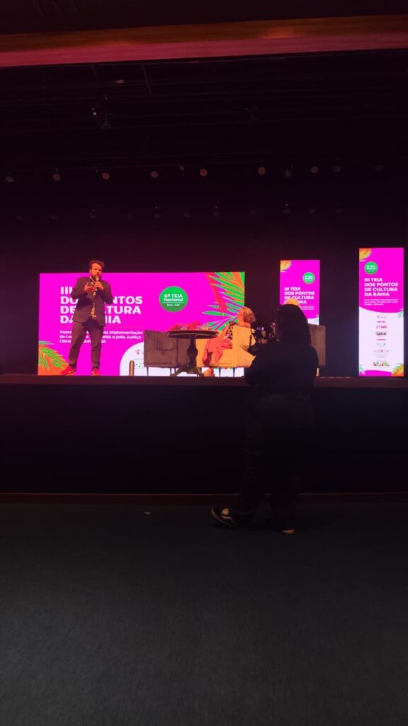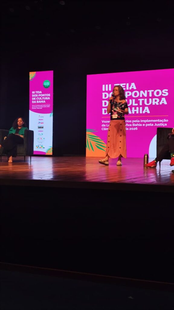 Registros realizados pela equipe da Cobertura Colaborativa da Teia Bahia 2026 da Mesa Temática: gestão colaborativa e compartilhada: o papel da rede dos Pontos de Cultura na implementação da Lei Cultura Viva Bahia